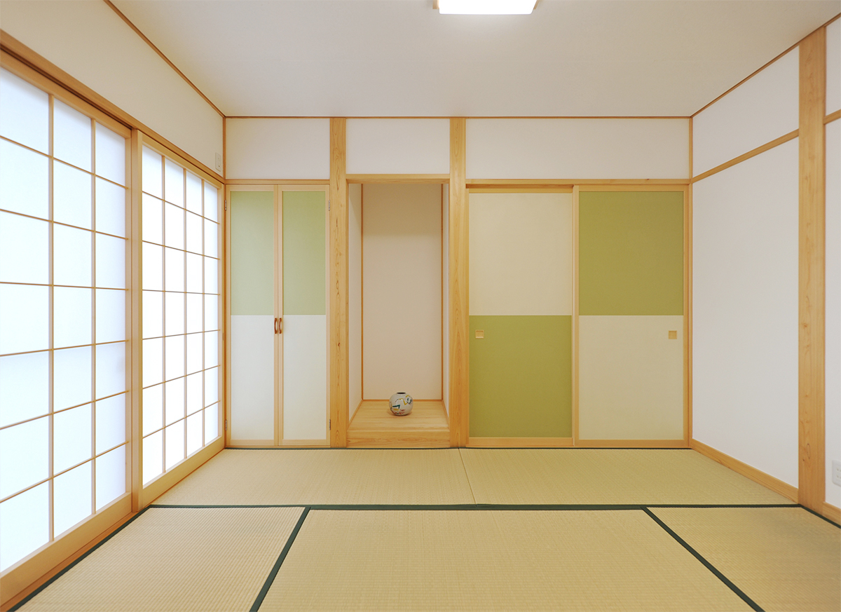 こちらは襖を閉めた所。障子で優しく二部屋を隔てます。