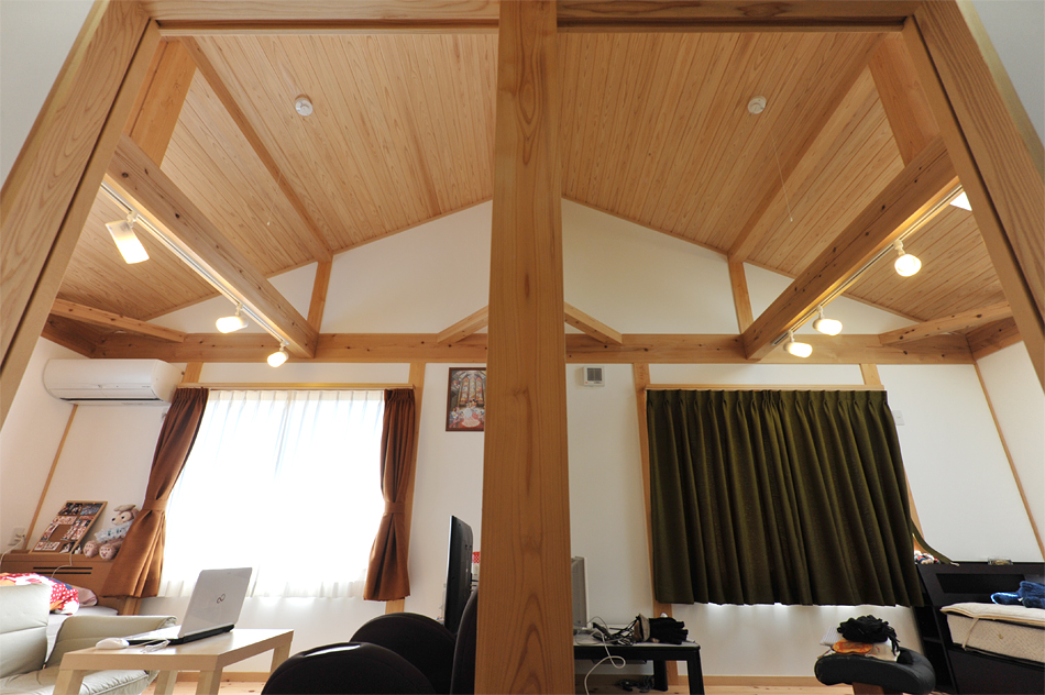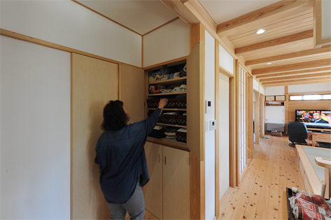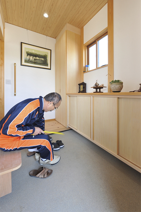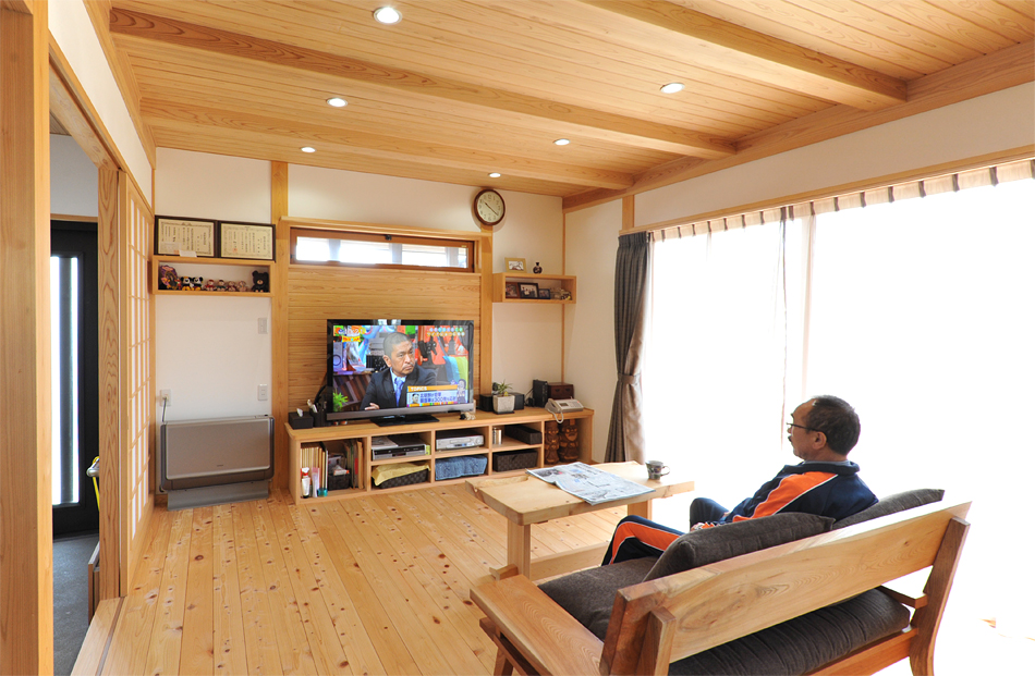 また作業スペース、収納なども効率よく配置し、結果的に廊下の少ない無駄のないプランとなりました。「住んでから1年経ちましたが、使い勝手も木の感じもいいですね。光熱費も以前より下がりました。」と大満足のご主人でした。2年、3年と、この家の木たちとともに、暮らしも味わい深くなっていくはずです。