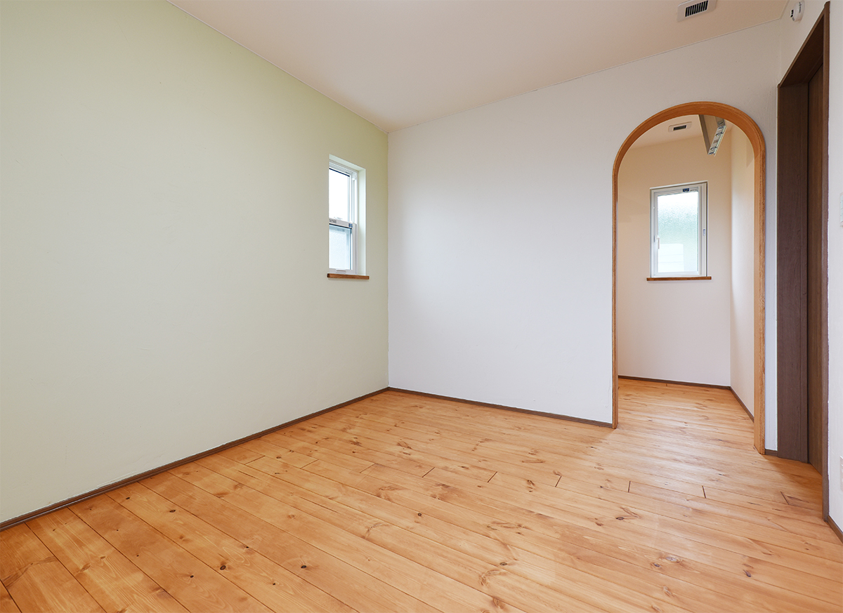 2階主寝室。アールのドアの先はウォークインクローゼット。